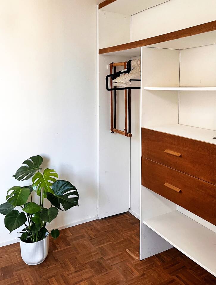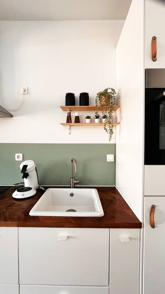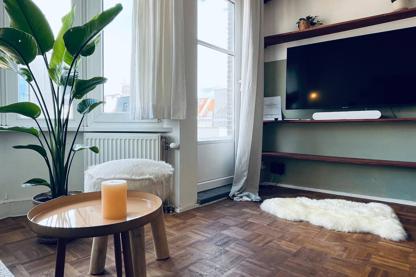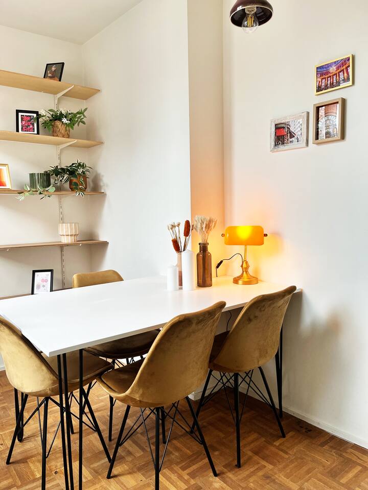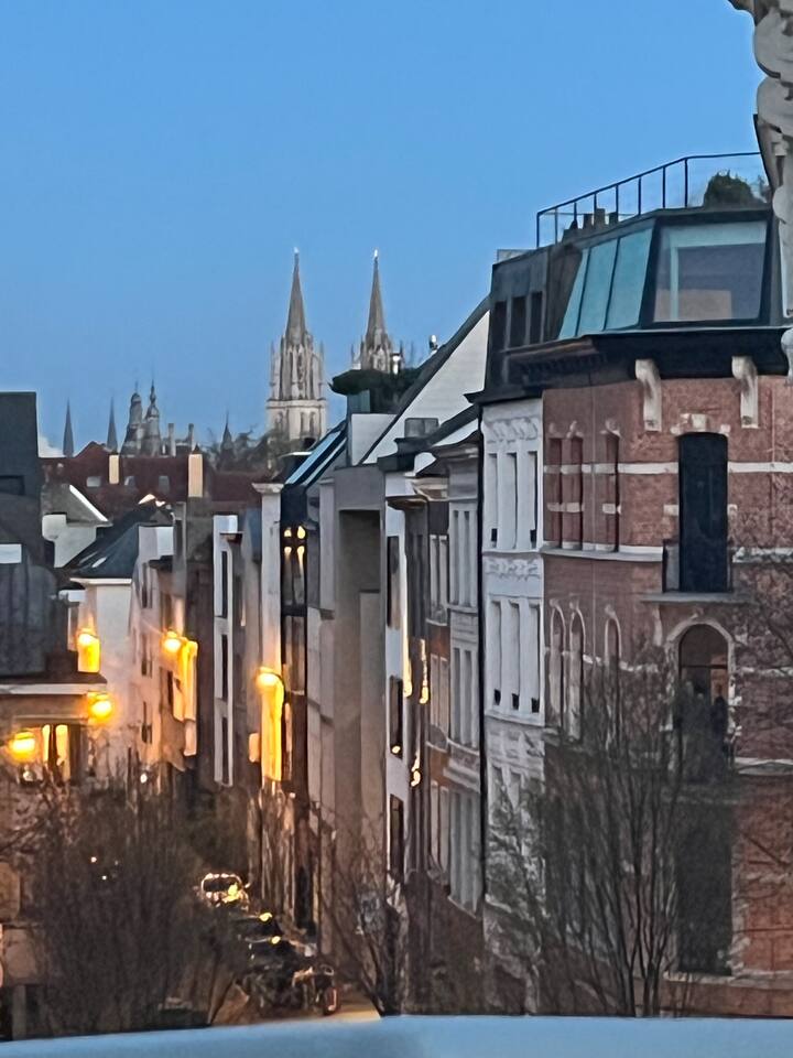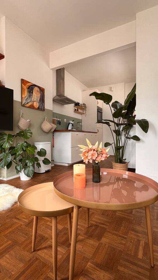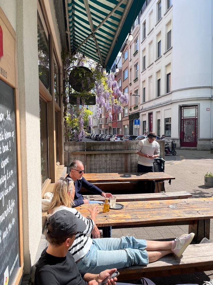 Located just 500m from the Cathedral, this stylish apartment is the perfect retreat in the heart of Antwerp at the fashion district. The space is designed for both comfort and creativity, with wall art adding character. The loft-style bedroom offers plenty of storage for clothes, making it ideal for short or extended stays. The brand-new bathroom features rose gold finishes and a walk-in shower, bringing a luxurious touch to your stay. The fully equipped kitchen has everything you need to cook, while the sunlit dining area seats four, making it perfect for meals or casual work sessions. There’s also a dedicated workspace, high-speed Wi-Fi, and a large flatscreen TV, ensuring both productivity and relaxation. A washer and dryer are available for your convenience. The apartment is on the 4th floor of a small building (no elevator), offering a peaceful stay in a lively area. Step outside, and you’re moments away from Antwerp’s charming squares, trendy cafes, and cultural hotspots, making this the perfect base to explore the city in style.