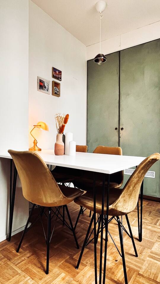 Located 500m from the Cathedral, this stylish apartment features artistic decor, a brand-new bathroom with rose gold finishes, and a walk-in shower. Enjoy a sunlit dining area, a fully equipped kitchen, and a spacious loft-style bedroom with ample storage. Work comfortably at the desk, relax with the large flatscreen TV, and use the washer & dryer. Situated in a nice small building on the 4th floor (no elevator). The price includes linnen service, towels, free shampoo, free coffee and more.